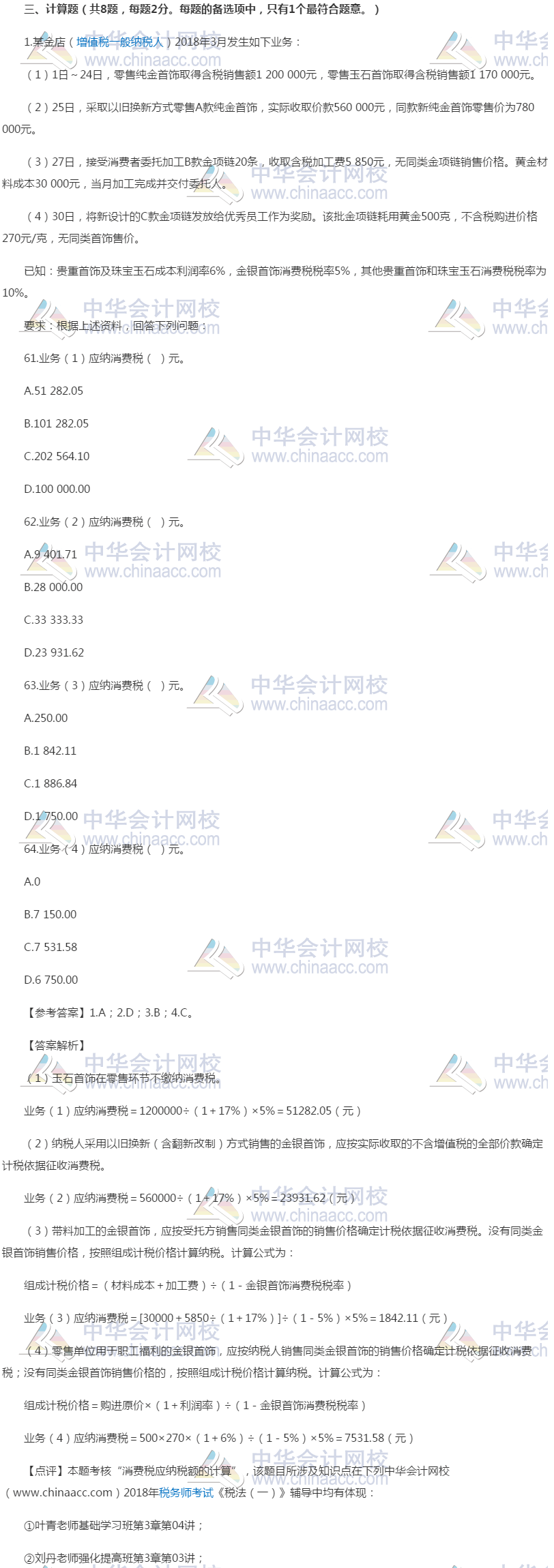 税务师《税法一》考后试题点评 刘丹老师(视频) 点击观看>>