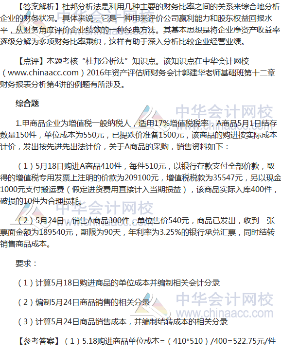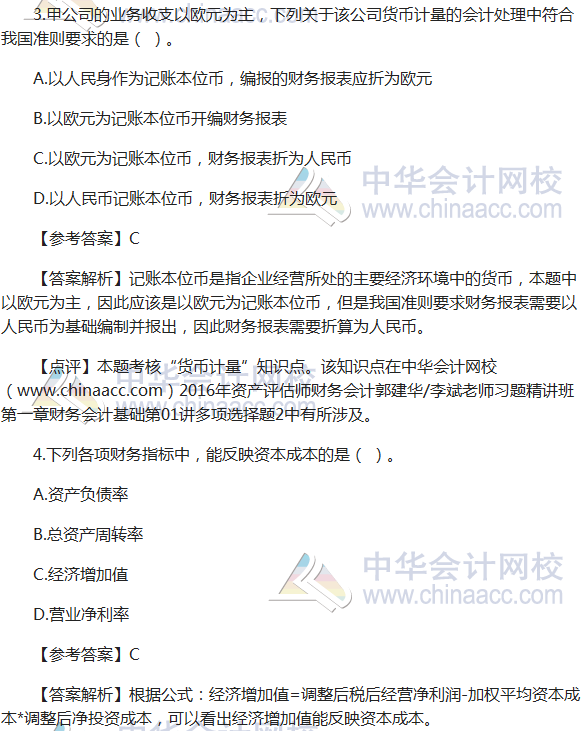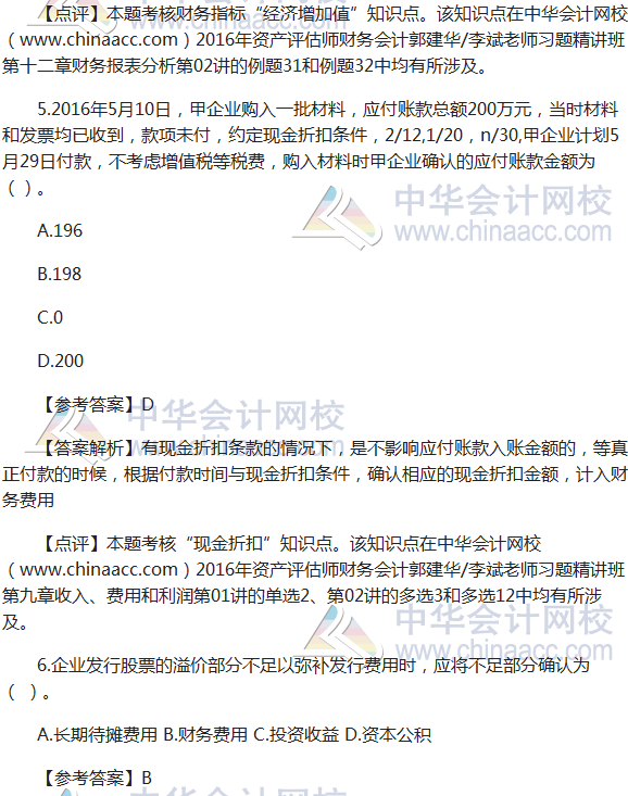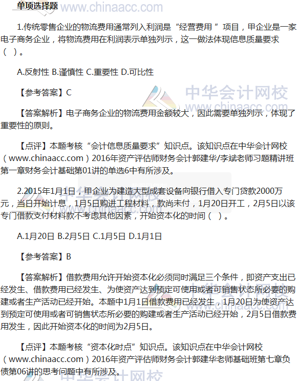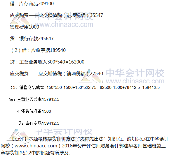 2016资产评估师《财务会计》试题及参考答案(考生回忆版)