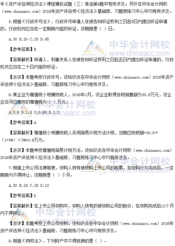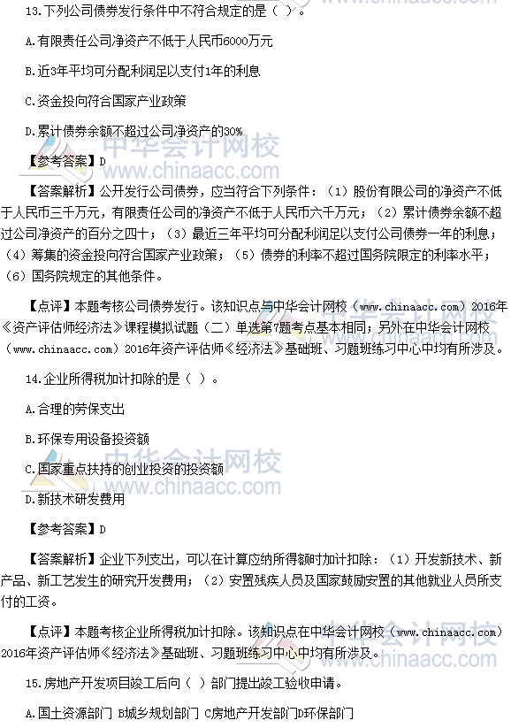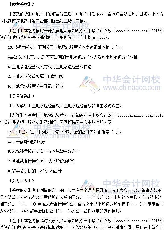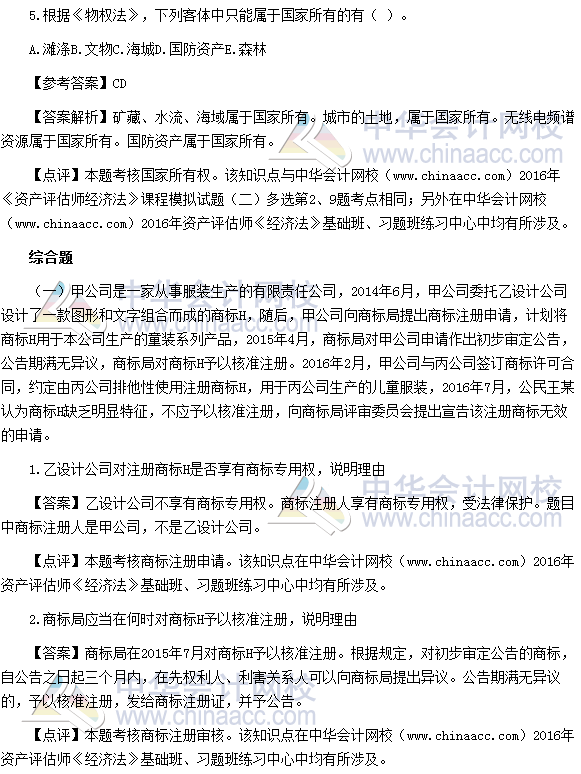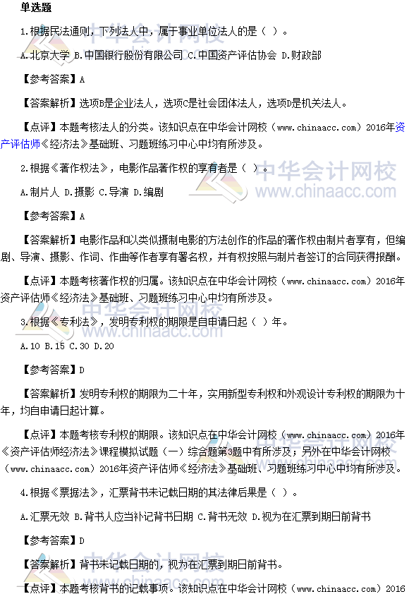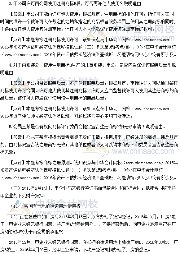 2016资产评估师《经济法》试题及参考答案(考生回忆版)