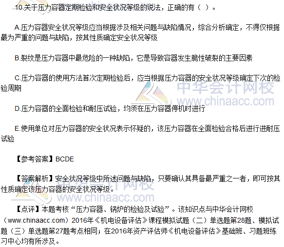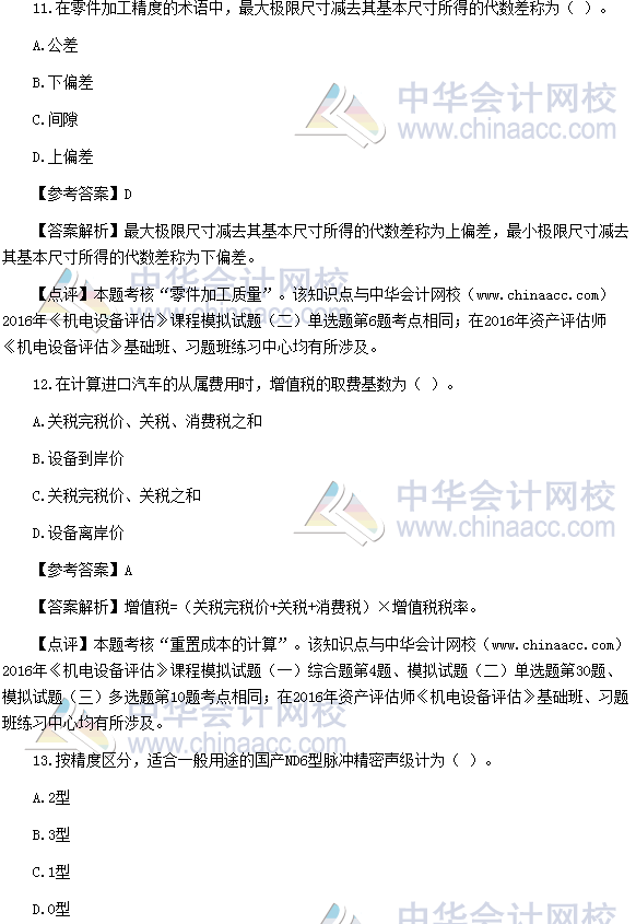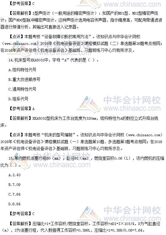 正保会计网校根据论坛学员反馈的2016年资产评估师《机电设备评估》试题,对2016年资产评估师《机电设备评估》试题及答案进行了整理,希望对考生有所帮助。