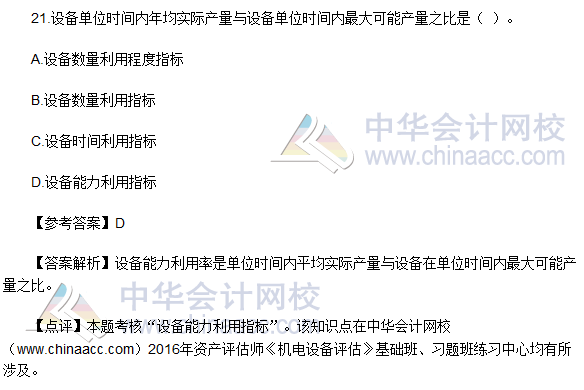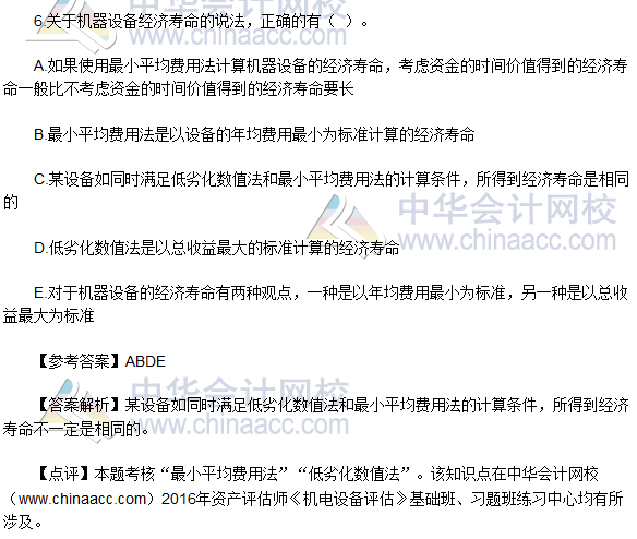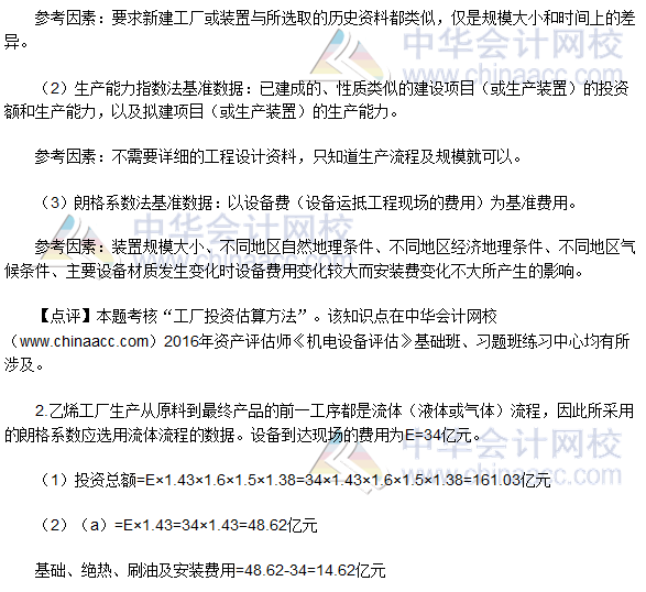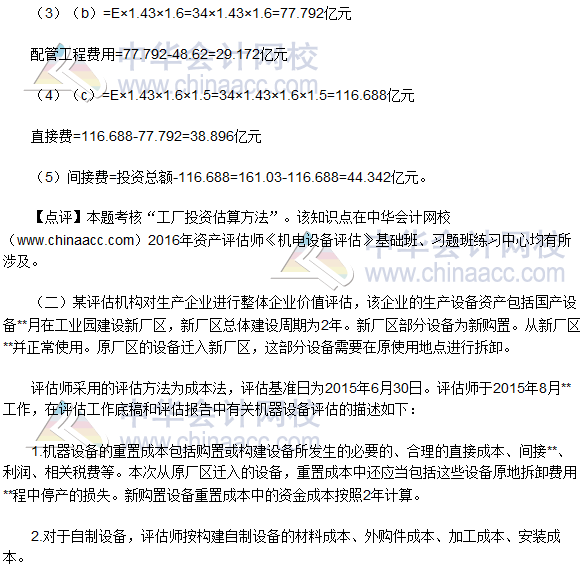 2016资产评估师《机电设备评估》试题及参考答案(回忆版)