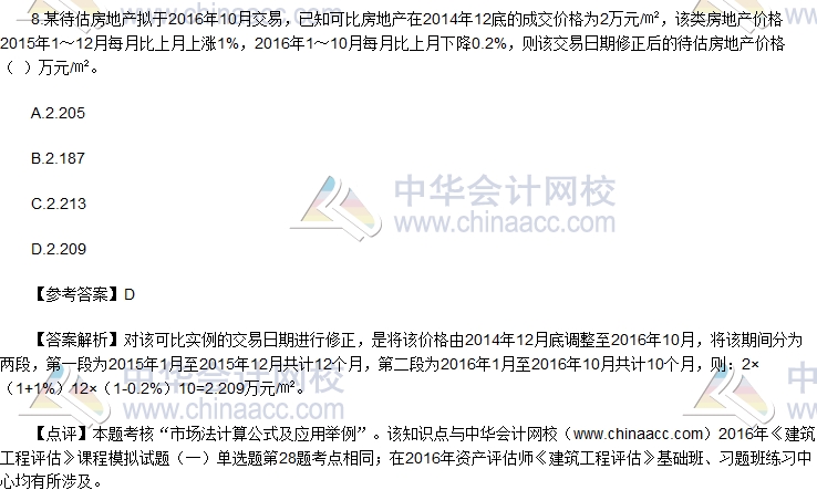 2016资产评估师《建筑工程评估》试题及参考答案(回忆版)