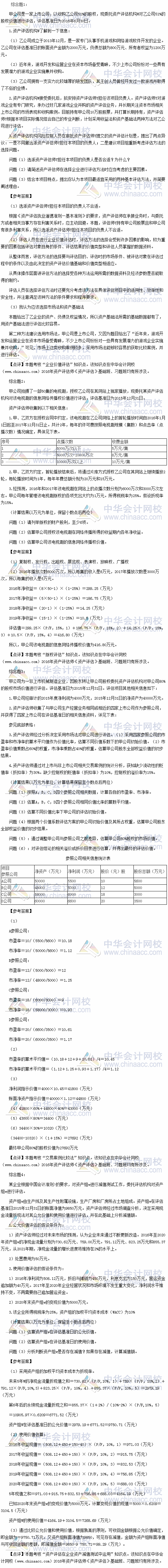 正保会计网校根据论坛学员反馈的2016年资产评估师考试《资产评估》试题,对2016年资产评估师考试《资产评估》试题及答案进行了整理,希望对考生有所帮助。
