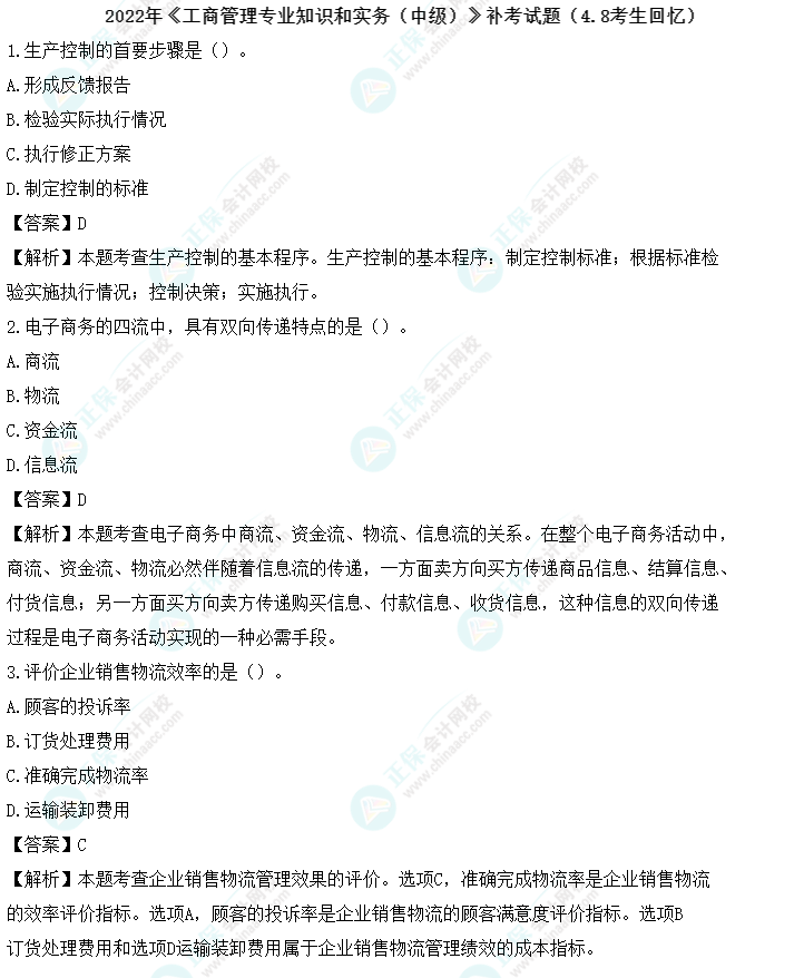 2022年中级经济师《工商管理》补考已经落下帷幕,大家答得如何?是不是都想对答案?正保会计网校根据论坛学员反馈,整理了2022中级经济师《工商管理》补考试题(考生回忆),供考生参考!