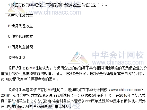 永远十八岁:反正这两年财管都是回归教材,很多都是教材原话,反倒平时好高骛远做难偏怪的,可能考得都不好