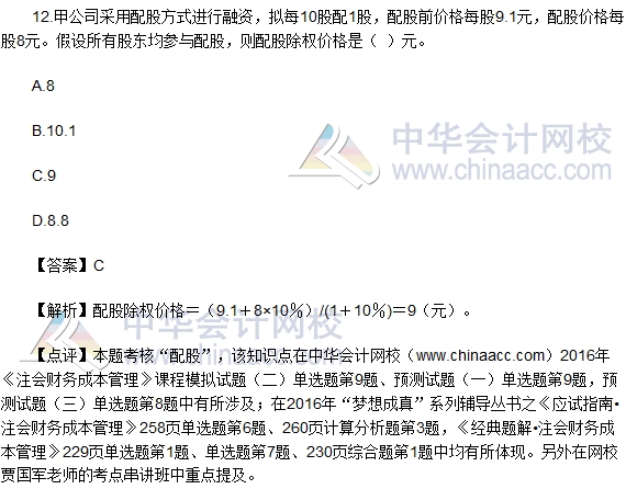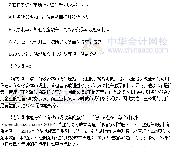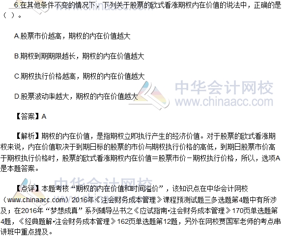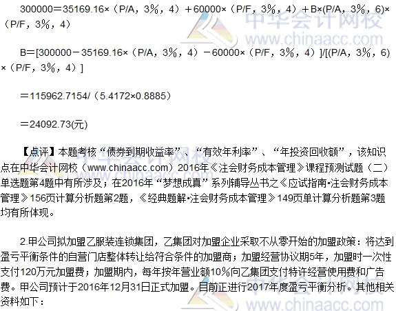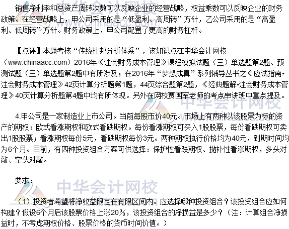 2016年注册会计师《财管》试题及参考答案(考生回忆版)