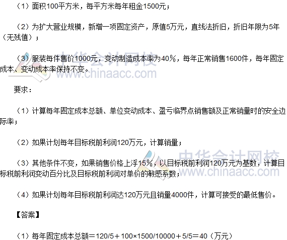 wetsmell:这次考试,综合没做完,综合第二问只是罗列了一些数字,最后一个计算题不知道怎么算才是对的,卡在了每年随着营业额10%缴纳的费用这里,不知道属于什么费用。