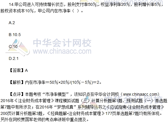 2016年注册会计师考试《财务成本管理》科目考试结束啦!