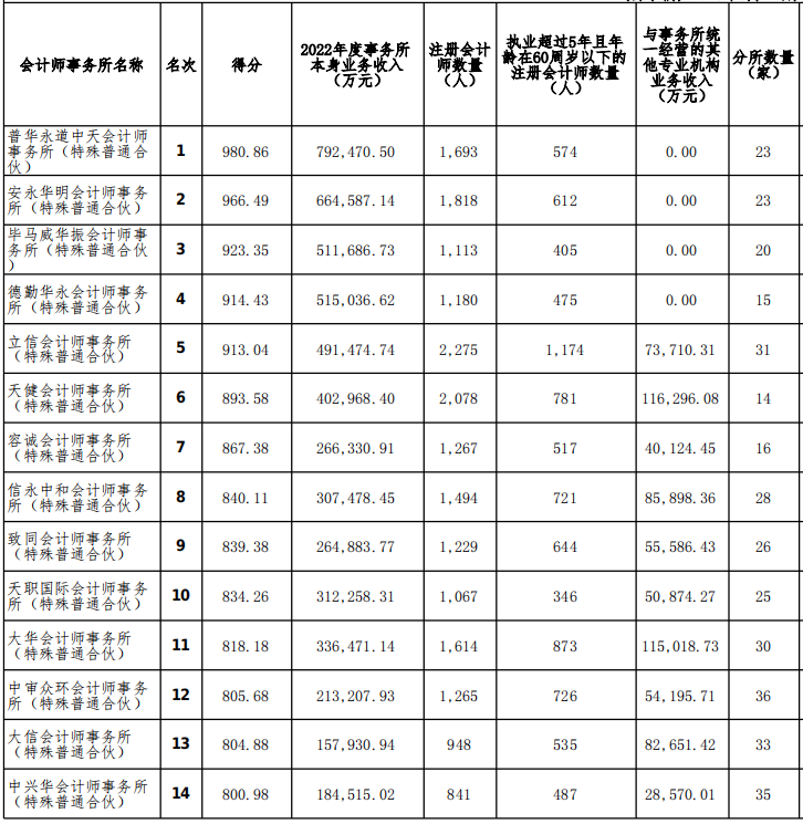 立信和天健成为内资所的榜首,这几年这两家事务所几乎是轮流成为内资所的头牌,他们的实力确实是很强悍!