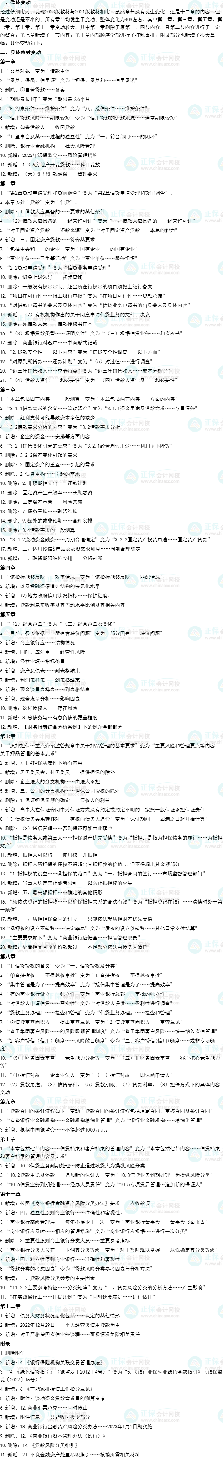 盼望着、盼望着2023年银行从业《公司信贷》教材出来了,大家是不是很期待新教材的变动情况呢?正保会计网校的老师在拿到教材之后经过认真比对,给大家整理了2023年银行从业《公司信贷》的教材变动情况,希望对大家有所帮助!