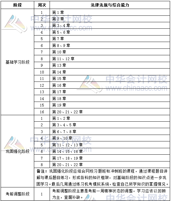 1、整体进度说明:本计划表时间上共计25周;其中:基础学习阶段安排16周,巩固强化阶段安排8周,考前调整阶段安排1周。学员可根据本表的提示,结合自己的工作,学习情况进行细化,并按网校要求完成听课、做题的学习任务,基本可满足考试需要。