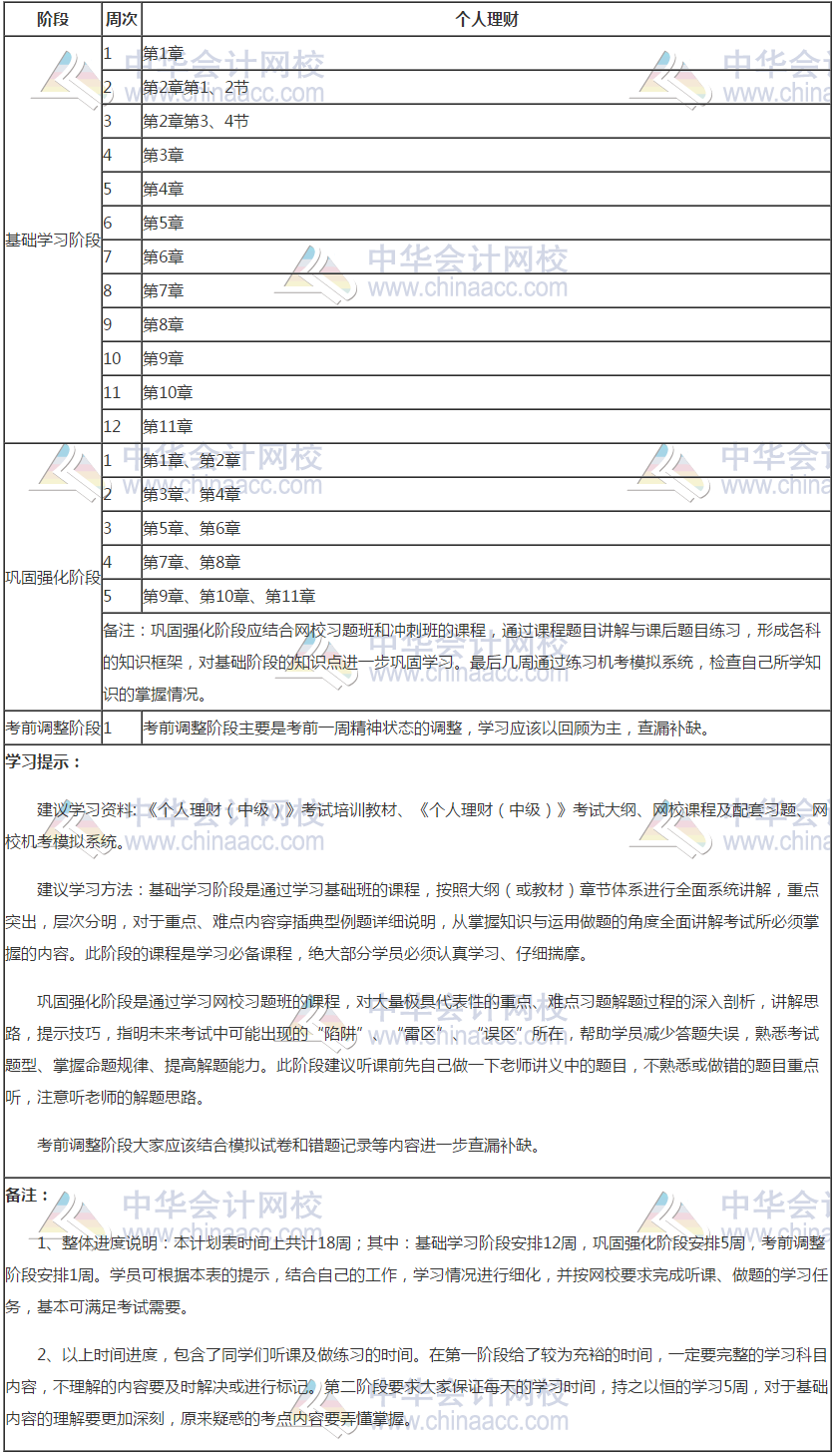 学习能力强,学习时间就短,所以学习计划因人而异。下面是网校整理的18周学习计划表,大家可以作参考: