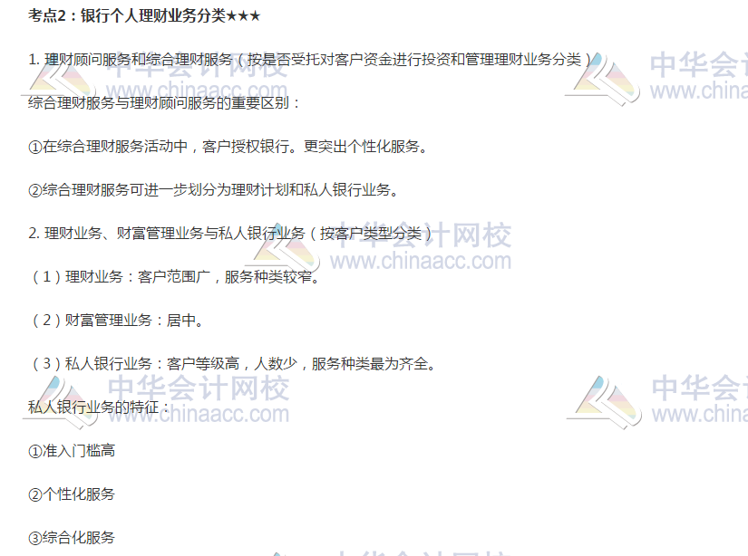2019银行初级《个人理财》高频考点:个人理财业务分类