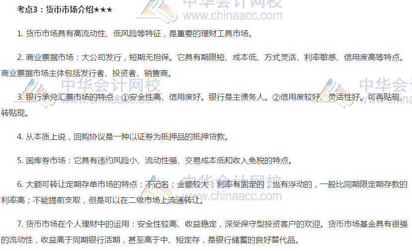 2019银行初级《个人理财》高频考点:货币市场介绍