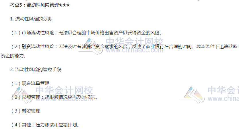 2019银行初级《法律法规》高频考点:流动性风险管理