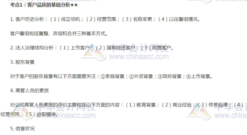 2019银行初级《公司信贷》高频考点:客户品质的基础分析