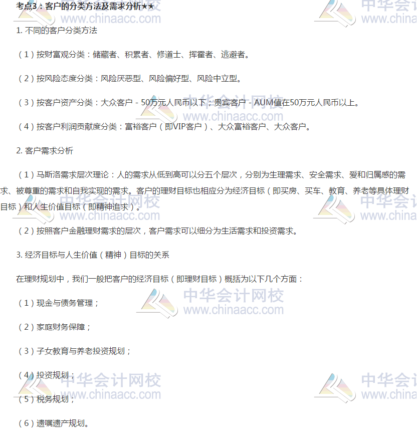 正保会计网校整理了2019年银行业初级职业资格《个人理财》第五章客户分类与需求分析的相关知识点,供广大考生参考学习,祝大家备考愉快,梦想成真!