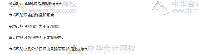 2019银行初级《风险管理》高频考点:市场风险监测报告