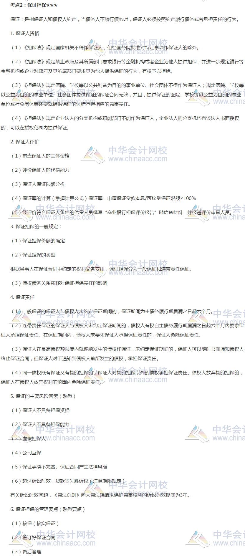 2019银行初级《公司信贷》高频考点:保证担保