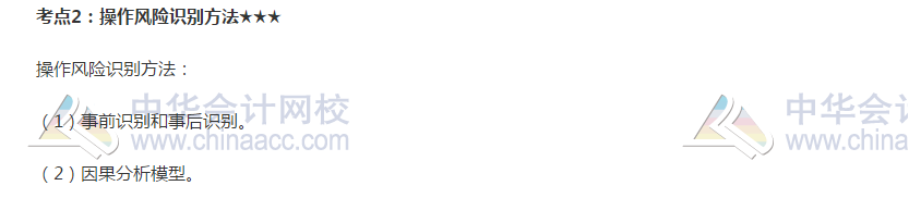 总感觉书本有点厚,什么时候才能看完?正保会计网校精心整理了银行初级职业资格《风险管理》高频考点:操作风险识别方法,希望各位考生能够记牢每个知识点,一举拿下银行职业资格考试!