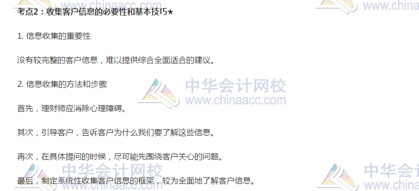 正保会计网校整理了2019年银行业初级职业资格《个人理财》第七章理财师的工作流程和方法的相关知识点,供广大考生参考学习,祝大家备考愉快,梦想成真!