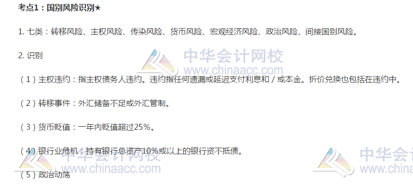 总感觉书本有点厚,什么时候才能看完?正保会计网校精心整理了银行初级职业资格《风险管理》高频考点:国别风险识别,希望各位考生能够记牢每个知识点,一举拿下银行职业资格考试!