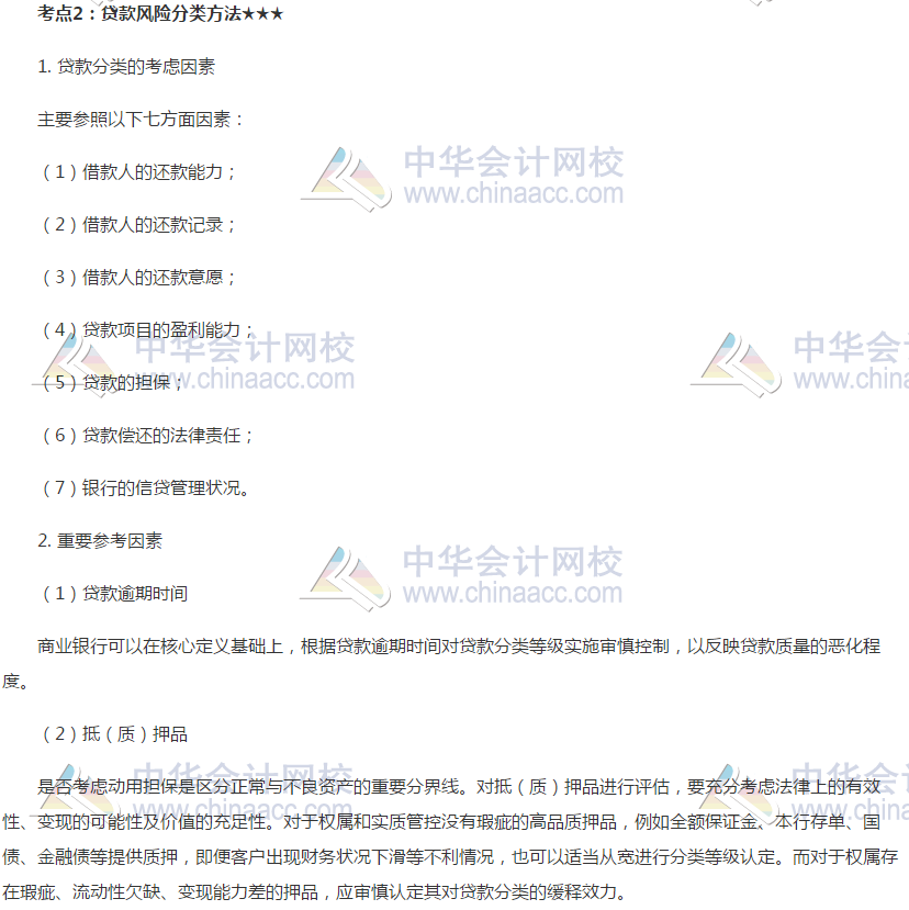 2019银行初级《公司信贷》高频考点:贷款风险分类方法