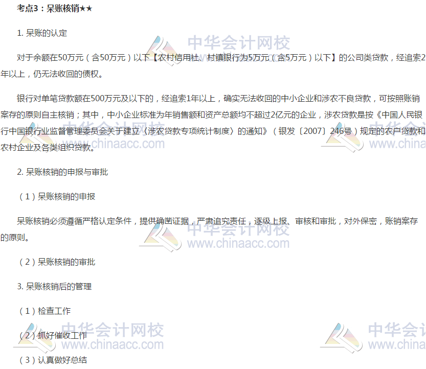 2019银行初级《公司信贷》高频考点:呆账核销