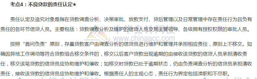 2019银行初级《公司信贷》高频考点:不良贷款的责任认定