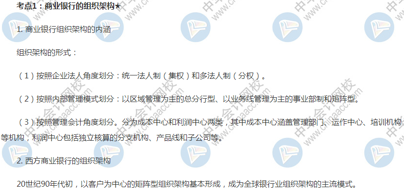 2019银行中级《法律法规》高频考点:商业银行的组织架构