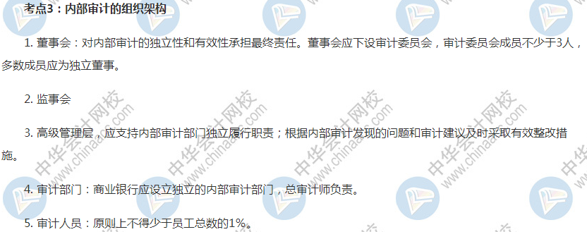 2019银行中级《法律法规》高频考点:内部审计的组织架构