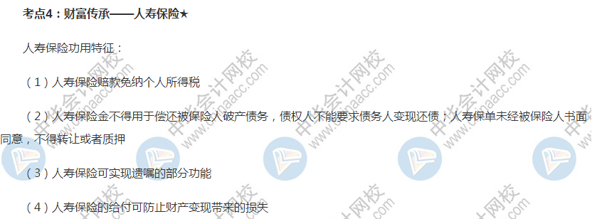 银行中级《个人理财》高频考点:财富传承——人寿保险