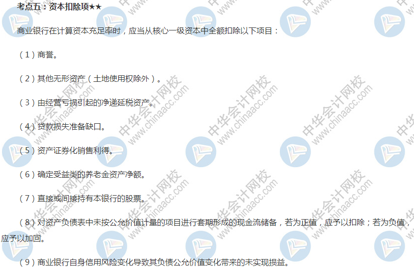 银行中级《风险管理》高频考点:资本扣除项