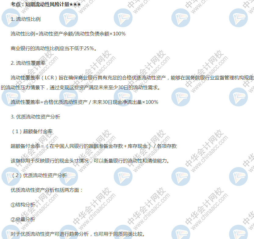 银行中级《风险管理》高频考点:短期流动性风险计量