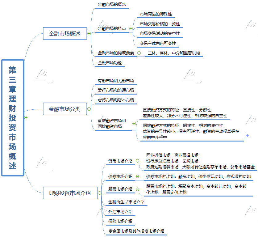 以下是2020年银行初级《个人理财》第三章“理财投资市场概述”思维导图:
