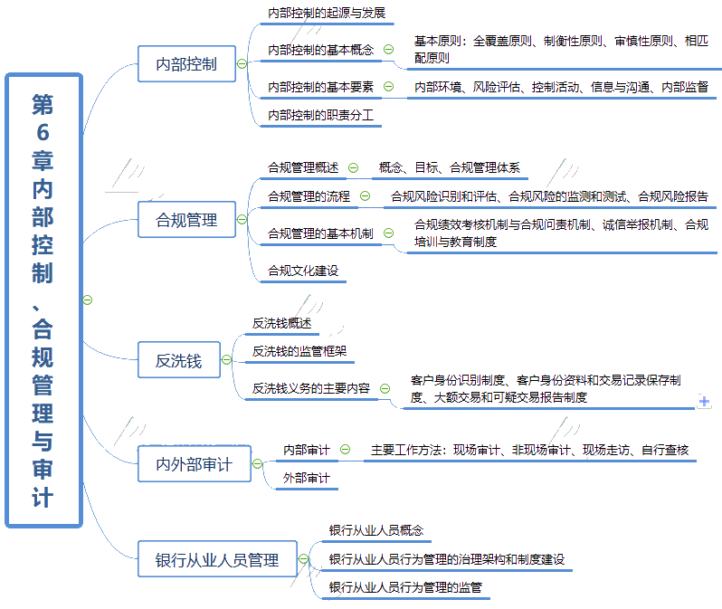 以下是正保会计网校整理的2020年银行初级《银行管理》第六章的思维导图: