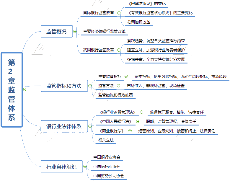 以下是正保会计网校整理的2021年银行初级《银行管理》第二章的思维导图:
