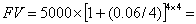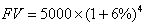 以单利计算4年后的本利和(终值)FV=5000*(1+6%*4)=6200
