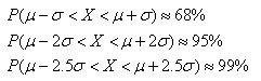 (5)正态随机变量x落在距均值1倍、2倍、2.5倍标准差范围内的概率分别如下: