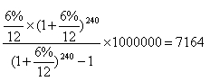 【例2·单选题】某客户于2013年5月向某银行贷款100万买房,期限20年,年利率为6%,自2013年6月1日起按月等额本息偿还,则该客户每月的还款额是( )元。