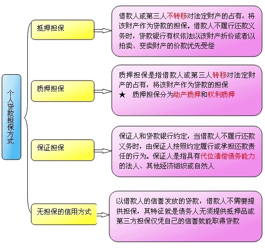 个人贷款可采用有担保的抵押、质押、保证方式及无担保的信用方式。