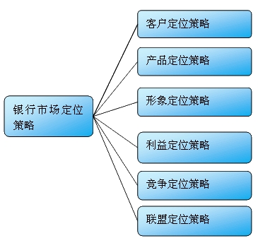 | 追随式定位 | 某些银行可能由于某种原因,如刚刚开始经营或刚刚进入市场,资产规模中等,分支机构不多,没有能力向主导型的银行进行强有力的冲击和竞争。这类银行往往采用追随方式效仿主导银行的营销手段。 |