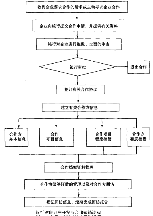 | 一手个人住房贷款合作机构营销 | 房地产开发商与贷款银行共同签订《商品房销售贷款合作协议》 |