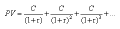 (期末)永续年金现值的公式为:PV=C/r