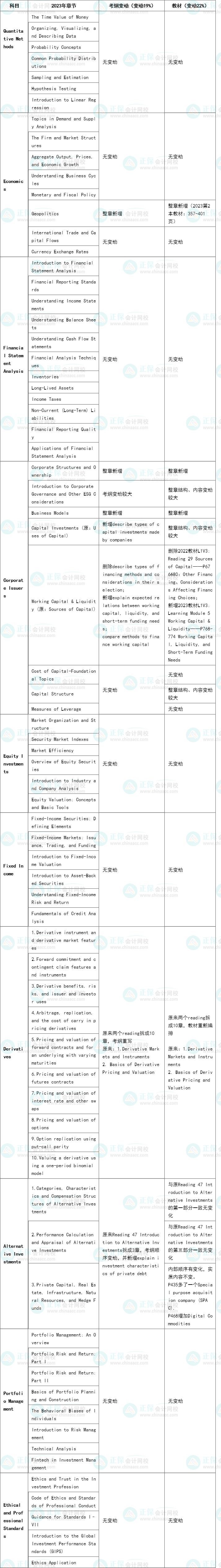 2023年CFA一级考纲+教材对比来啦!如果你打算报名2023年CFA考试,千万别错过,一起看一看考试内容变动情况吧!