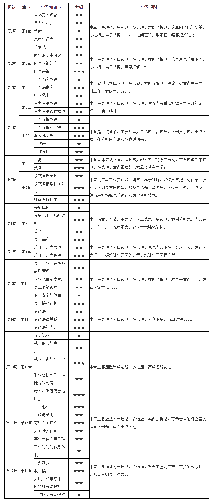 为了帮助广大考生朋友更好的进行2022年初级经济师《人力资源管理》备考,网校老师特意整理了《人力资源管理》12周预习计划表,帮助大家有条不紊的学习,提前进入预习状态,备考抢先一步。