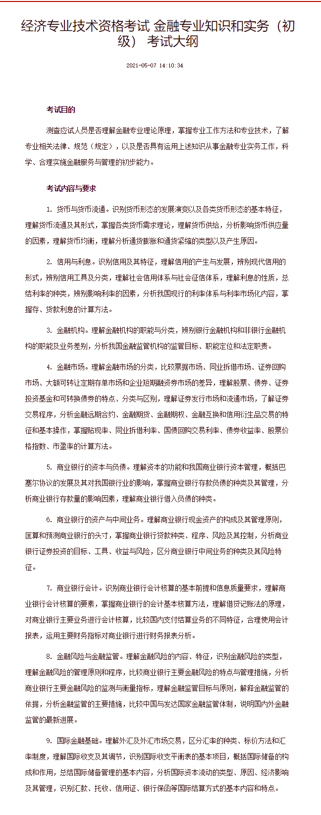2021年初级经济师《金融》的考试大纲已经公布,考试大纲内容有哪些?正保会计网校小编特意为各位考生整理了相关信息,供广大考生参考。以下是2021年初级经济师《金融》的考试大纲内容,赶紧来看看吧~