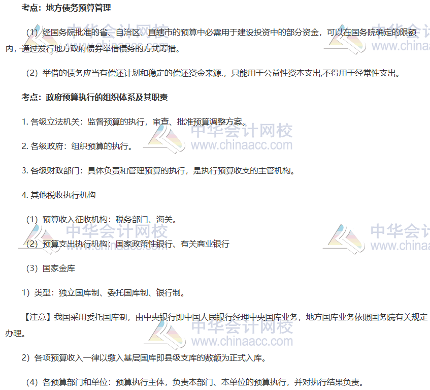 在初级经济师考前,网校为广大考生提供初级经济师《财政税收专业》考前1周冲刺“救命”讲义,为您冲刺助力!以下是第十章 地方债务预算管理及政府预算执行的组织体系及其职责精选冲刺讲义,快来学习吧!