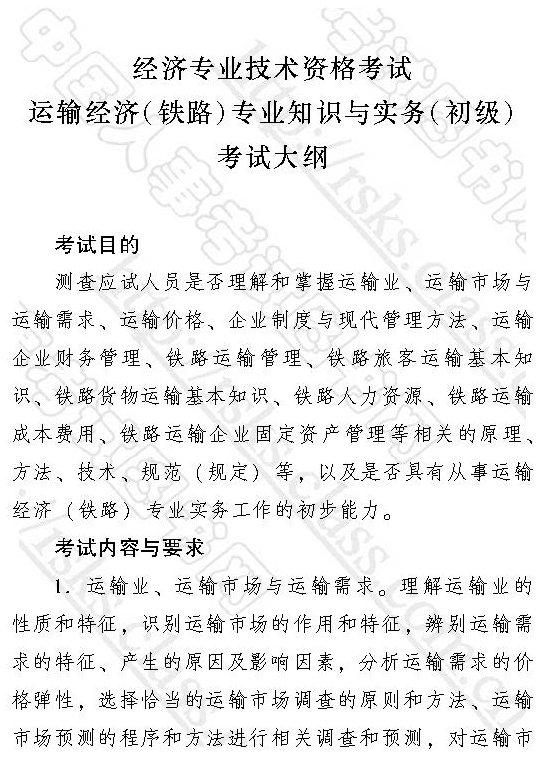 2017年经济师运输经济(铁路)专业知识与实务(初级)考试大纲已经发布,为了帮助广大考生顺利通过2017年经济师考试,网校经济师频道整理了运输经济(铁路)专业知识与实务(初级)考试大纲,希望能帮助大家对考试有所把握。