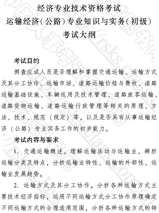 2017年经济师考试大纲发布,为了帮助广大考生尽快了解2017年经济师考试情况,网校经济师频道整理了运输经济(公路)专业知识与实务(初级)考试大纲,希望能帮助大家对考试有所把握。